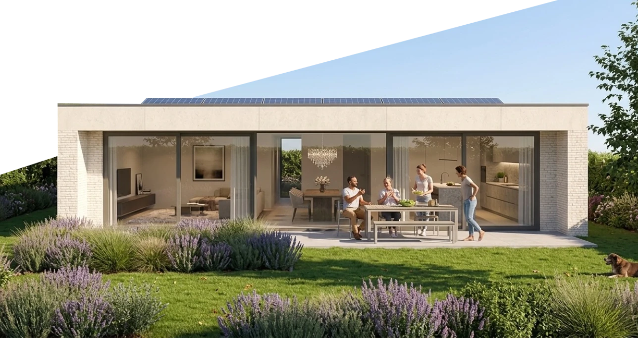 Het Pinax-ontwerpsysteem staat eindeloze creativiteit toe. Tijdens het ontwerptraject ontwerpt onze architect samen met jou een woning die bij je past. Daarnaast kies je de gewenste materialen voor de afwerking uit een speciaal geselecteerd assortiment. Zo bouwen we in 5 tot 6 maanden je woning en kun je direct verhuizen.